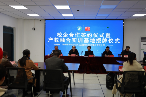 12月1日下午,学院与安徽晓庄信息技术有限公司在管理系大数据云计算中心成功举行校企合作签约仪式暨产教融合实训基地授牌仪式。学院党委书记张志华,党委委员、副院长施向阳,党委委员、教务处处长王树青,管理系党总支书记陈兴旺,管理系主任陈素霞,招生就业处处长叶士舟,公司董事长席时雍,副总经理席东升等出席本次仪式。21级电子商务专业辅导员和30名学生代表参加仪式,仪式由副院长施向阳主持。