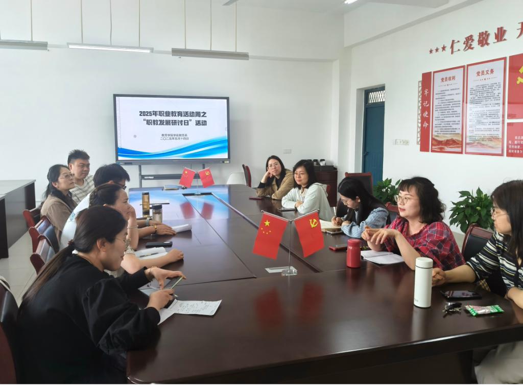 5月13日下午,教育学院紧扣“一技在手、一生无忧”主题,组织教师开展2025年职业教育活动周之职教发展研讨日活动。活动深入学习贯彻习近平总书记关于“实实在在地把职业教育搞好”的重要指示精神,聚焦基础教育师资培养核心任务,以“全员参与、共商共研”为主线,围绕人才培养、专业建设、教学创新等核心议题展开深度研讨,凝聚破局共识,激发专业发展内生动力。
