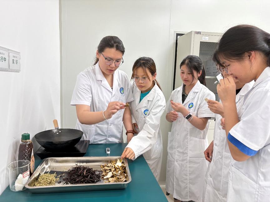 实训室内,古法紫草膏制作与现代技术深度交融,传统工艺在精密仪器的加持下绽放科技华彩;报告厅内,教师们以金银花、藿香为天然“墨料”,于香囊飞针走线间,将千年中医药智慧娓娓传递。食堂氤氲的粽香里,包藏的不仅是舌尖上的传统滋味,更承载着屈原矢志不渝的精神内核,在师生间完成跨越时空的情感传递。青年之家中,学生们以天然颜料为笔,勾勒出山水云纹的灵动飘逸,让千年汉韵与当代美学跨界交融,在古今对话中绽放璀璨华光。正如学生刘雨涵所言:“指尖触碰的不只是古老技法,更是跨越千年的文明密钥。”生动诠释了传统技艺在新时代语境下生生不息的文化张力。