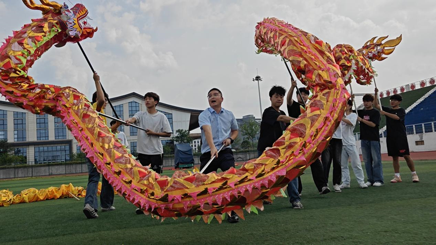 特别值得关注的是,国际级舞龙舞狮裁判员李谋涛教授亲临。在《传播中华文化培养龙的传人》专题讲座中,李教授以深厚的学术积淀,系统梳理舞龙文化的发展源流,深入剖析南北地域舞龙艺术的风格差异。不仅通过图文并茂的形式解构经典动作,更结合运动力学原理,对托举、翻滚、腾跃等技术细节进行专业解读。讲座结束后,李教授针对我校龘龘舞龙队训练实际,亲自示范"龙出宫"等经典套路,通过分解教学纠正节奏把控偏差。他还结合多年裁判经验,为队员们传授核心肌群训练方法与竞技技巧,将体育专业知识与非遗文化传承有机结合,为舞龙技艺传承与创新发展注入专业动能。