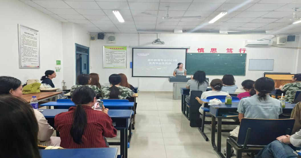 活动伊始,潘瑶副主任围绕“音乐教育专业的初心与使命”为主题展开深度分享。她结合自身教学经验,从专业课程体系、实践能力培养、职业素养塑造三个维度进行详细讲解。她强调音乐教育绝非单一的技能传授,更应是一场以艺术之美滋养心灵、以音乐之力启迪人生的育人旅程。