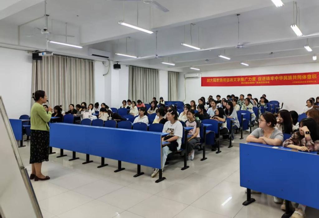 讲座中,郎娟娟以“加大国家通用语言文字推广力度,促进铸牢中华民族共同体意识”为主题,深入剖析了国家通用语言文字在传承中华优秀传统文化、增进各民族交流融合、推动社会发展中的重要作用。推广国家通用语言文字是铸牢中华民族共同体意识的重要途径,能打破地域和民族间的语言壁垒,促进文化认同与情感共鸣,为国家发展凝聚强大合力。