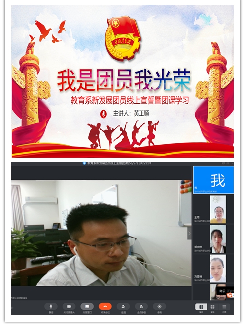 线上宣誓仪式由系团总支黄正顺老师主持,由16学前初专3班陈云同学带领新团员宣誓。面对屏幕上鲜艳的团旗,同学们举起右拳,用响亮的声音庄严宣誓,隔着屏幕都能感受到所有团员们对共青团组织的无限向往和为团组织增光添彩的豪迈激情!