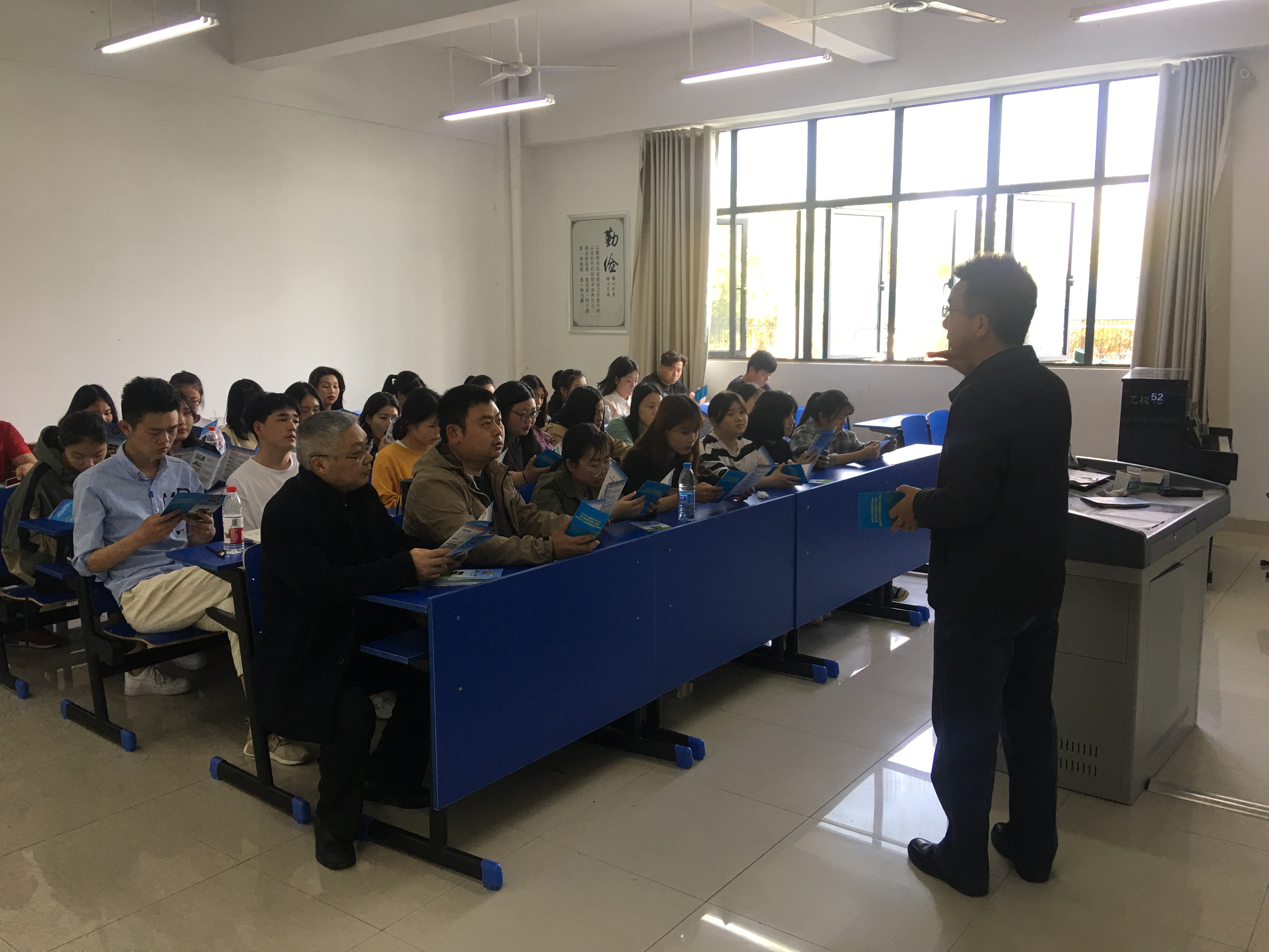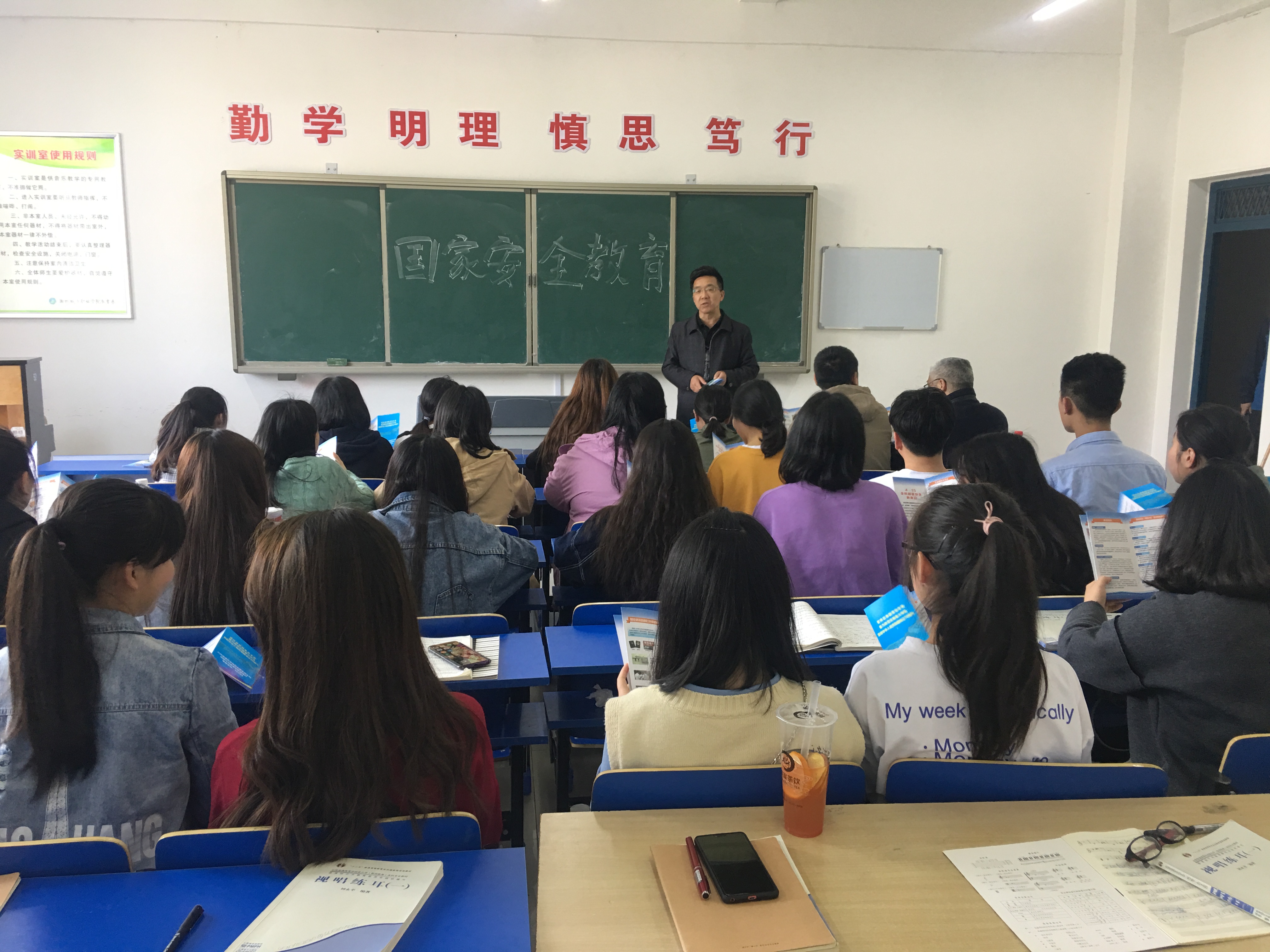 4月15日课外活动期间,在音乐楼134教室,系党总支书记杨孝富为全系学生代表作了一场安全主题教育宣讲会,副书记汪勇、学管秘书李巍、辅导员李菲及学生代表参加了宣讲会。