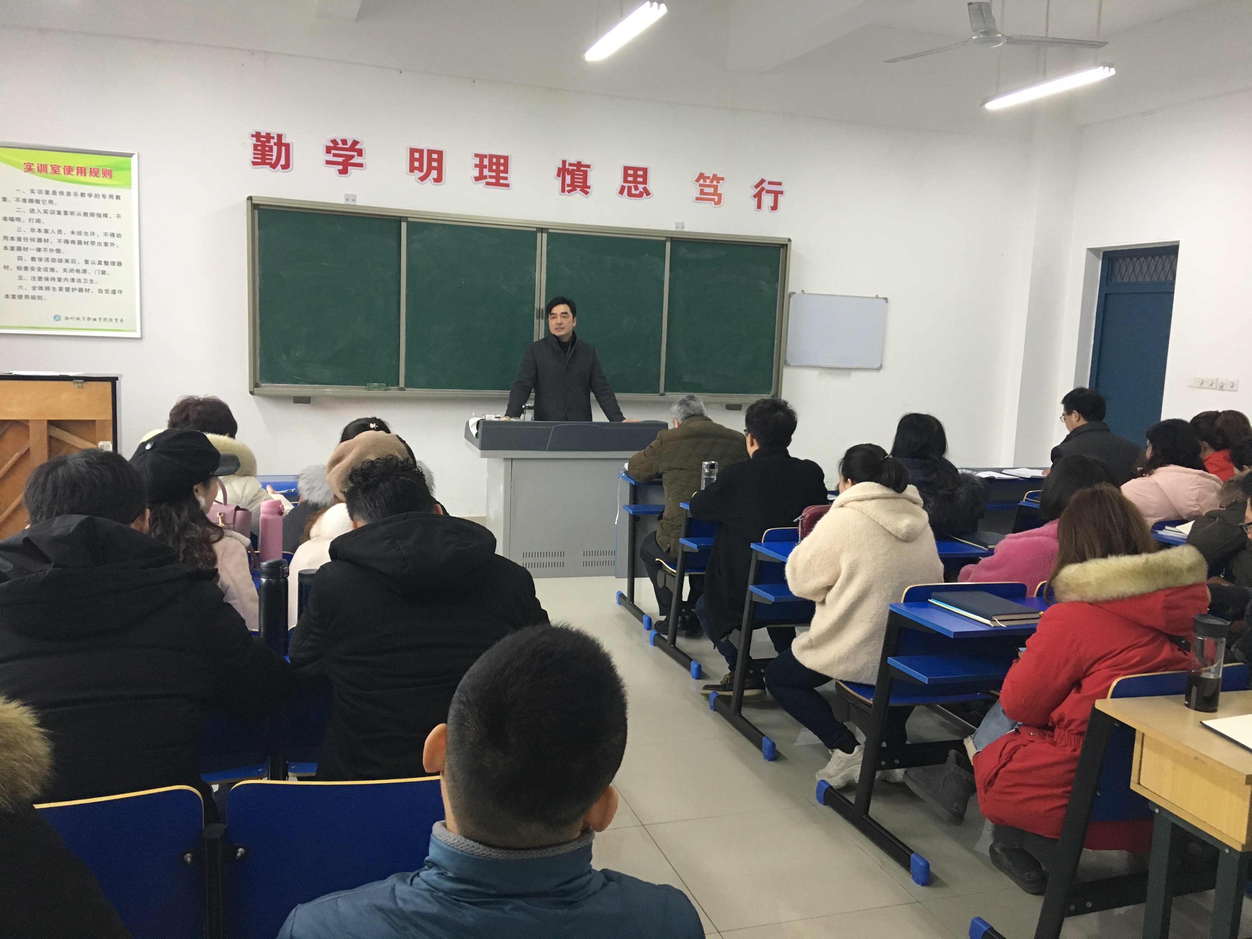 会议由系党总支书记杨孝富同志主持,全体教师参加了会议。系主任钱中宝同志对2018年度工作进行了总结并提出了2019年艺术系工作计划,从师德师风建设、教师基本功训练、日常教学管理等方面提出具体要求,并就新学期的教学工作做出部署。