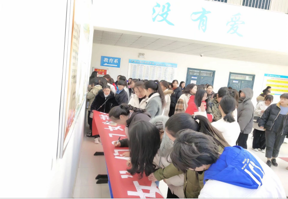 3月7日中午,系学生会在教育系大厅举行了女生节签名活动,女生们积极主动地在条幅上签上了自己的名字和寄语。经过的男生们驻足观看并对我系女生表达了美好祝福。