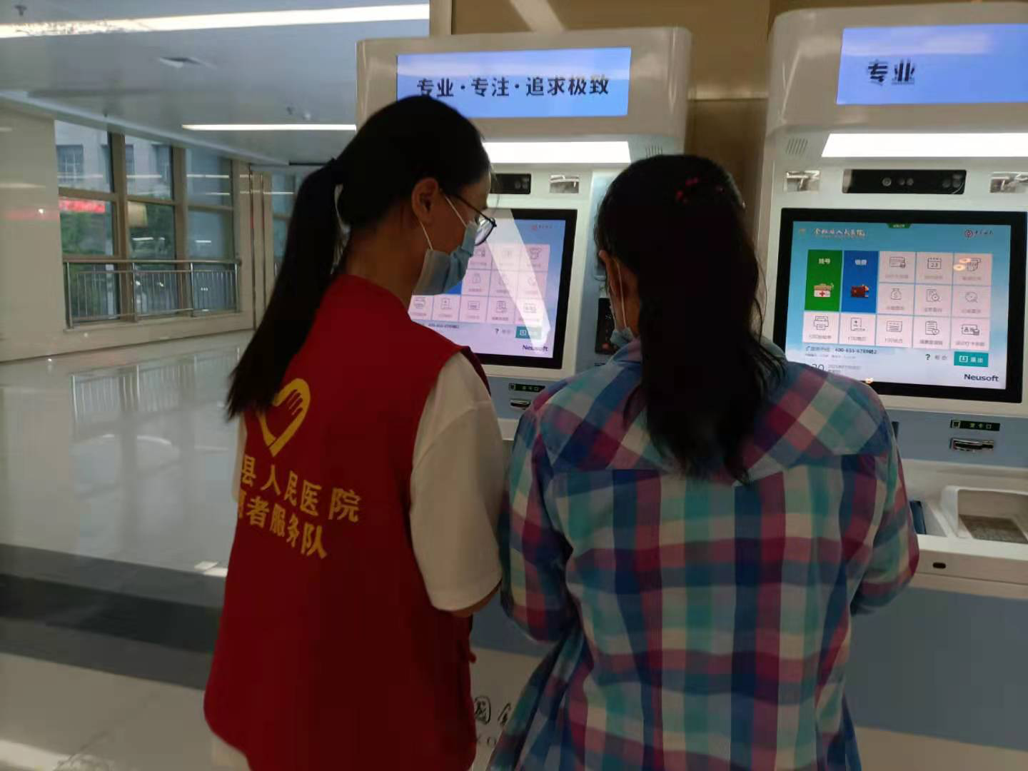 志愿者们在门诊部、急诊科、检验科、药房等窗口科室,引导和帮助患者快速预约、挂号,充值、就诊、取药、做检查、做治疗、缴费、打印报告单等相关程序,尽心尽力为患者服务,为就医患者节省了不少就诊时间,搭起了医护人员与患者之间的良好沟通桥梁,改善了患者就医体验,提升了医疗服务质量,提高了医院就医满意度,获得就诊就医患者的一致好评。