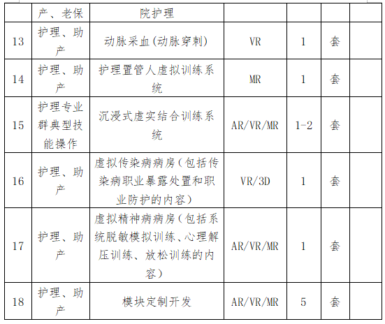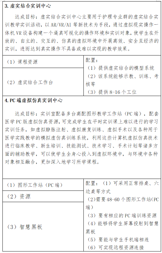 发挥VR/AR/MR、人工智能等新一代信息技术优势,基于护理专业群基础,实现信息技术和实训设施深度融合, 找准实训教学中的痛点、难点,优化实训教学课程体系,以实带虚、以虚助实、虚实结合,同步实现资源 “云”化,持续加强实验实训教学优质虚实资源建设与应用;进行模块化教学改革,依托数智化教学支持系统,通过视频直播、视频录像管理及直播互动等环节,开展远程实践教学和专业见习,实现教学与临床的无缝对接。