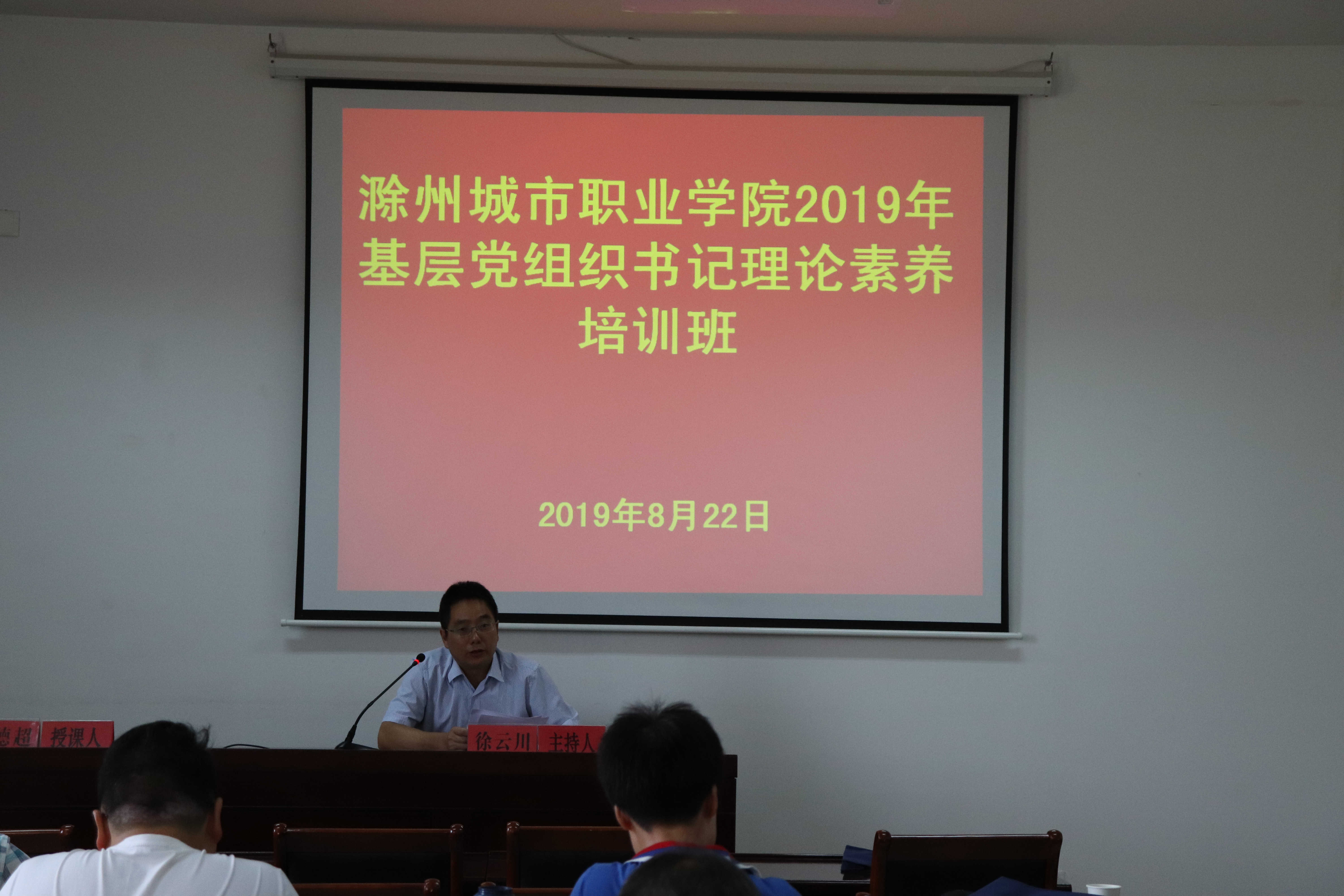 8月22日上午,学院基层党组织书记理论素养培训班在市委党校开班,党委委员、组织人事处处长徐云川出席并主持会议,各系党总支(党支部)书记、副书记及党务工作者30余人参加培训。