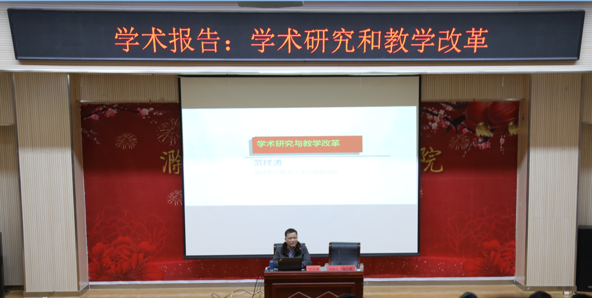 12月11日下午,优秀校友、南京航空航天大学外国语学院院长范祥涛教授应邀为我校全体教师作学术报告,报告会由副院长陈立武主持,院领导牛春雨、施向阳、胡墨农、王树青及全体教师聆听了报告。
