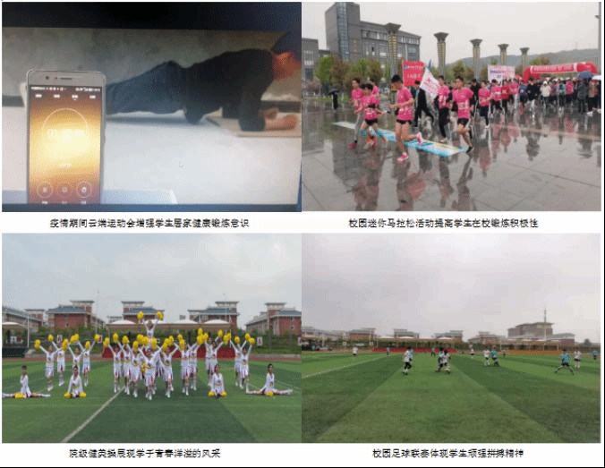 “十三五”至今,体育教学部以“立德树人”为根本任务,强化党建引领谋事业发展,牢固树立“健康第一”理念,推进校园“体育文化”建设提升工作,坚持以师生为中心强化体育教学、群众体育和体育竞赛工作,持续提高学生体质健康水平,不断推进学校体育事业向“更高、更快、更强”方向发展,助力学院技能型高水平大学建设。