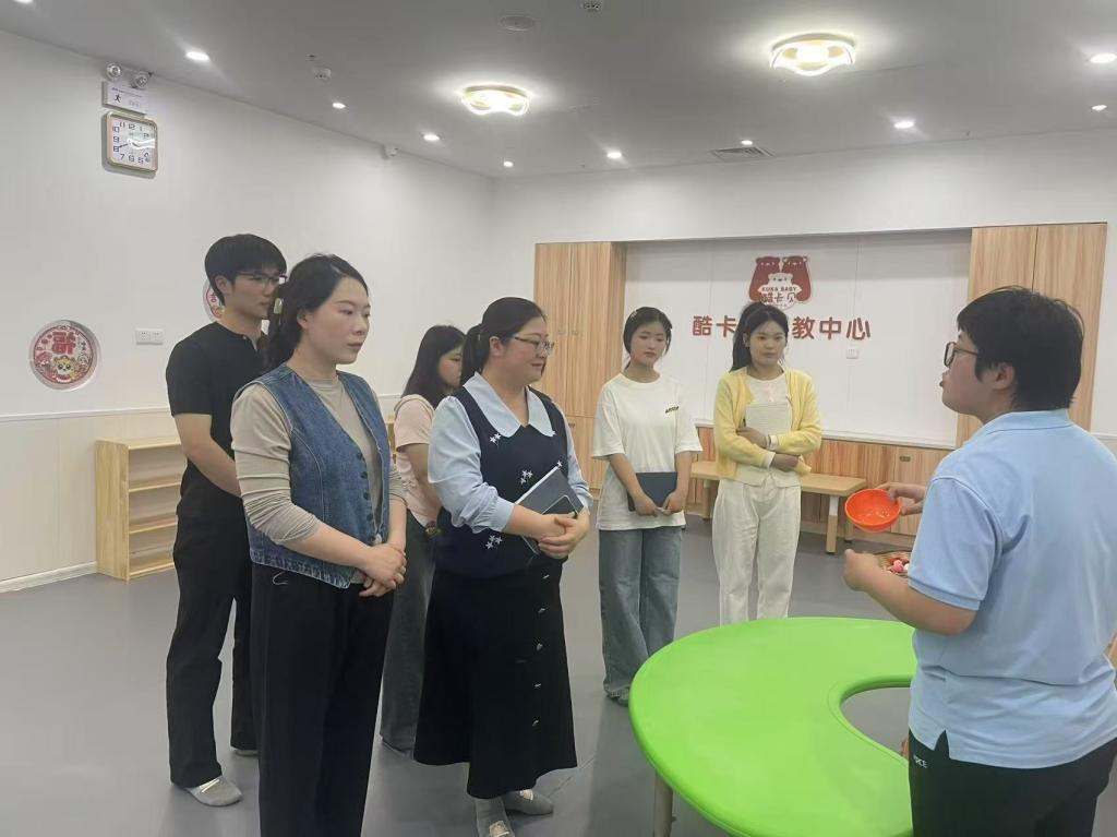 为深化职业教育产教融合实践,探索早托专业教学改革新路径,4月23日下午,教育学院早期教育系主任徐校会、婴幼儿托育服务与管理专业负责人戴月琦带领早托专业六名学生走进滁州酷卡贝全日托早教中心,开展“去托育园上大学”主题实践活动,通过沉浸式观摩、互动式研讨与岗位化实践,探索“课堂革命”新路径,为产教融合注入新活力。在酷卡贝早教中心孙老师的引导下,师生们深入参观了感统训练、语言训练、全脑发育教室等多功能教...